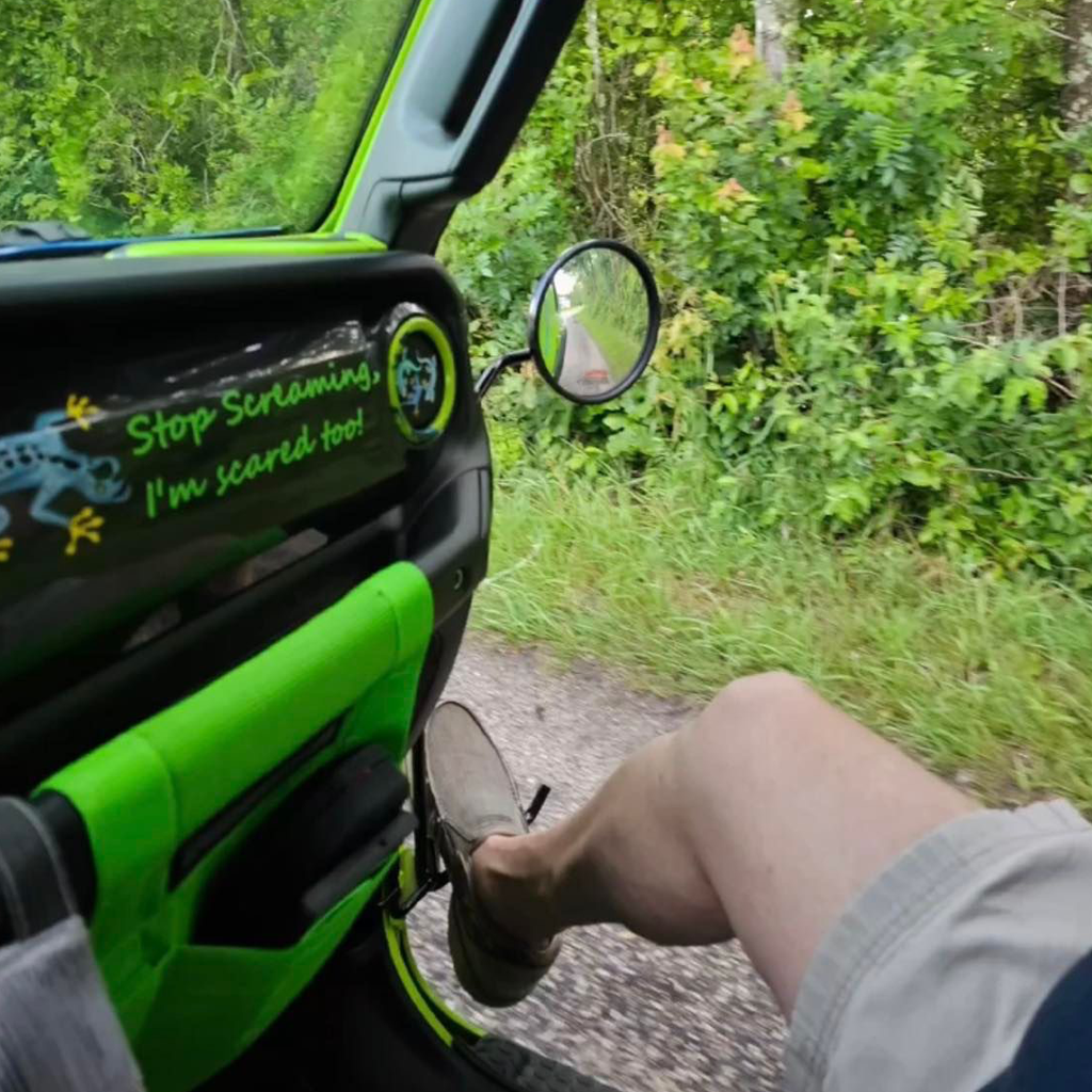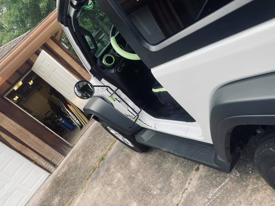 KikBax is a QUICK AND EASY solution to adding mirrors and a footrest to your Jeep Wrangler after removing your doors
